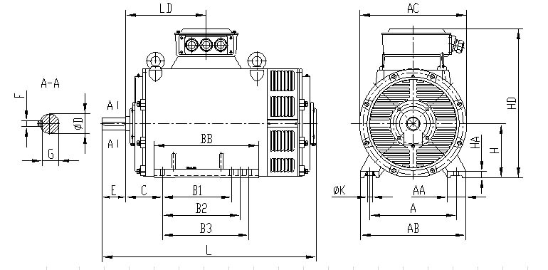 Motors with cast iron or steel plate welding frames can be produced according to customers’ special dimensions requirements.